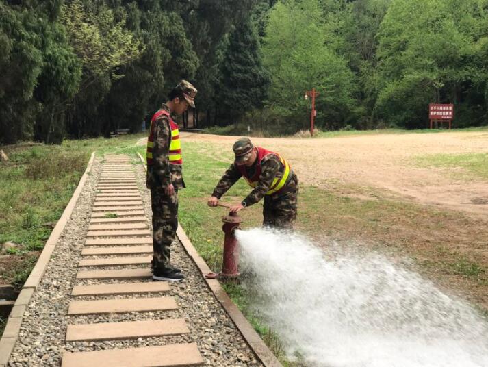 據了解,七曲山風景區是全川範圍內唯一配備專職消防隊的特殊景區,目的就是要全方位無死角保護這些珍貴的古柏。目前景區通過安裝視頻監控的方式,以「鷹眼」反饋動態信息。消防站實行24小時值班制,值班人員通過查看監控了解險情,如有安全隱患,立即報告並通知相關人員到場緊急處理,按時做好值班交接登記。在梓潼縣七曲山風景區微型消防站監控室記者看到,消防站值班人員白俊波正在對景區各個監控點進行仔細查看,確認是否有遊客亂丟煙頭、戶外燒烤、焚燒垃圾、燃放煙花爆竹等火災隱患。在監控室的大型顯示頻上,景區即時狀況一目了然。在土地椏停車場的巡查現場,消防隊員認真檢查每一個消防栓的工作狀態,確保林區發生火災能第一時間就近進行滅火處理。消防隊員用扳手一個個擰開栓塞,一股股水流噴射而出,表明林區消防栓完全合格達標,可以正常使用。
