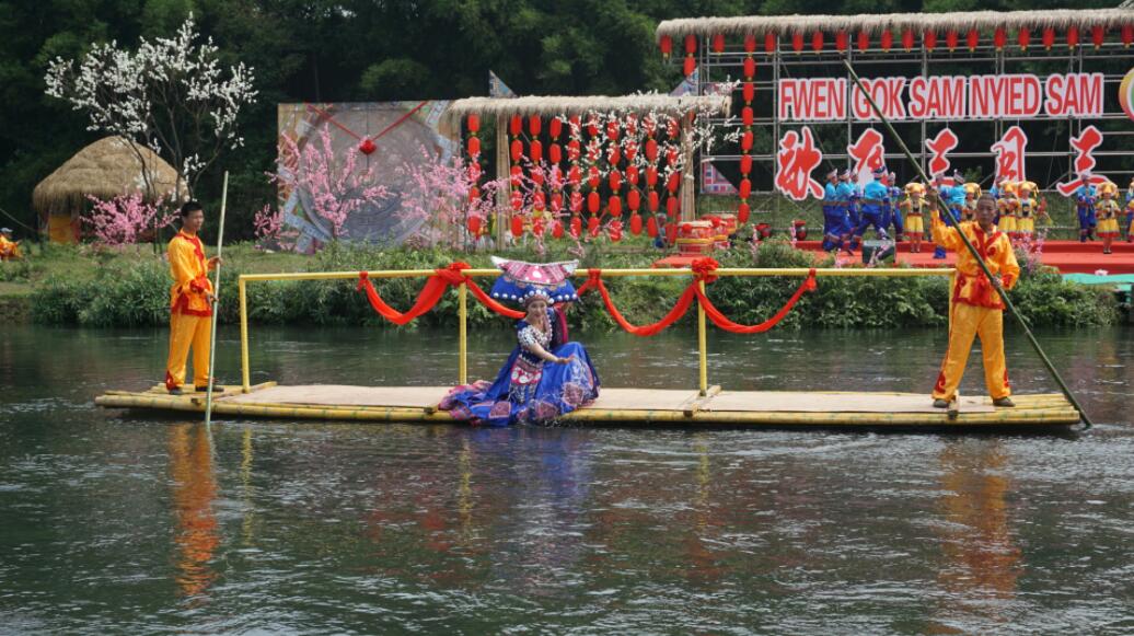 【香港商報網訊】記者 歐陽萍 徐玉瑩 報道:4月7日,廣西欽州市「壯族三月三」系列活動之一的「歌飛三月三·情滿八寨溝」壯鄉嘉年華在欽北區貴台鎮八寨原鄉舉辦。