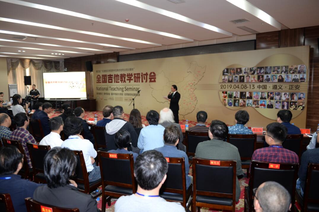 【香港商報網訊】記者 黃慶松 報道:4月9日,第四屆「天津音樂學院附中古典吉他專業培訓基地」全國教學研討會在貴州省遵義市正安縣隆重舉行。來自西班牙、奧地利、德國、瑞典的外國吉他藝術家,國內吉他界專家、學者和少部分列席代表出席參加。