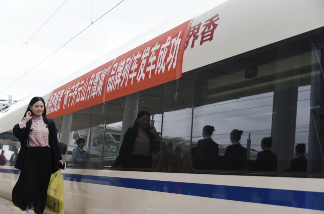 【香港商報網訊】4月10日,「休寧齊雲山月潭湖」品牌列車,承載着豐富多彩的旅遊線路產品以及27萬休寧人民的殷殷熱情,在高鐵安徽黃山北站正式首發,這標誌着安徽黃山市休寧縣文化旅遊事業正式邁入「高鐵時代」。當日發車的該趟列車是由黃山北站經由杭州開往上海虹橋的G7306列車。