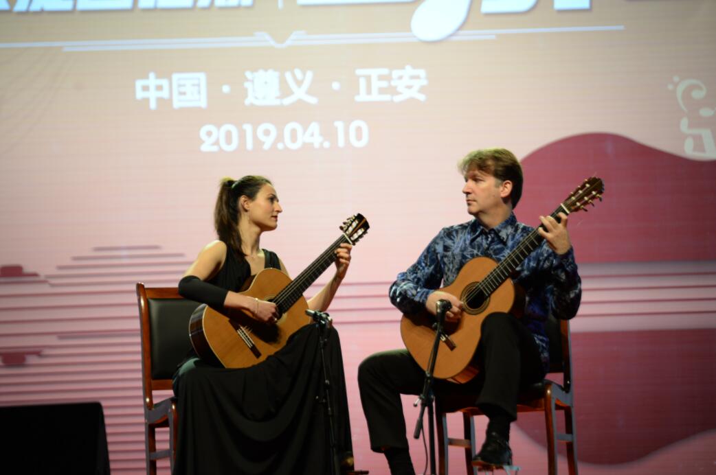【香港商報網訊】記者 黃慶松 報道:4月10日,來自奧地利的吉他演奏家馬庫·塔馬友和西班牙的安娜貝爾·蒙提茜諾斯在貴州省遵義市正安縣文化館為市民帶來了一場美妙絕倫、珠簾合璧的天籟之音吉他音樂會。