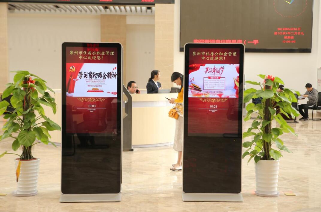 大廳設定了35個窗口,包括公積金市區管理部、建設銀行、工商銀行、中國銀行、農業銀行、興業銀行,辦理公積金的人員只需要一次就能辦理所有的公積金業務,提高了市民辦事效率和良好的服務。服務大廳擺放多台廣告機播放當前熱點資訊,查詢機提供便捷快速查詢打印個人信息,兩套全彩大屏系統,循環播放當前辦理公積金業務的一些規章和流程等信息,方便辦理公積金的人員對公積金的業務流程更加熟悉。