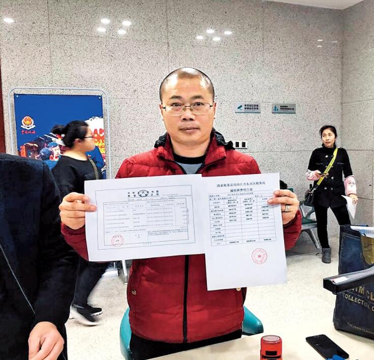 【香港商報網訊】4月8日,在國家稅務總局四川內江市東興區稅務局辦稅大廳,東興區高崇沙石經營部工作人員在辦理完代開發票預繳稅款後,除收到稅收完稅憑證外,還有一張「減稅降費明白表」,表上清楚列示了減稅降費前、後應繳稅款、實繳稅款,以及普惠性稅收優惠政策帶來的紅利。