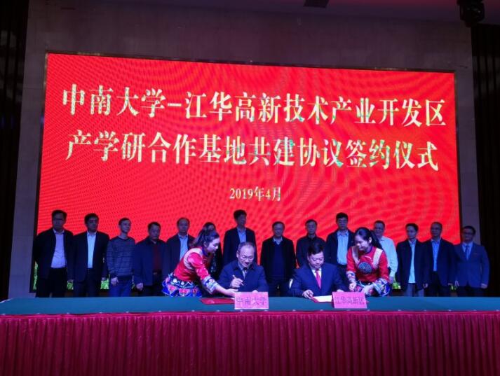 江華高新區黨工委書記鄧鐵成介紹,作為首批合作內容,中南大學商學院與江華高新區、中南大學材料學院與湖南貴德集團有限公司、中南大學冶金學院與湖南豪曼新能源科技有限公司分別簽署協議,在戰略規劃、技術研發及產業化等方面推進合作。