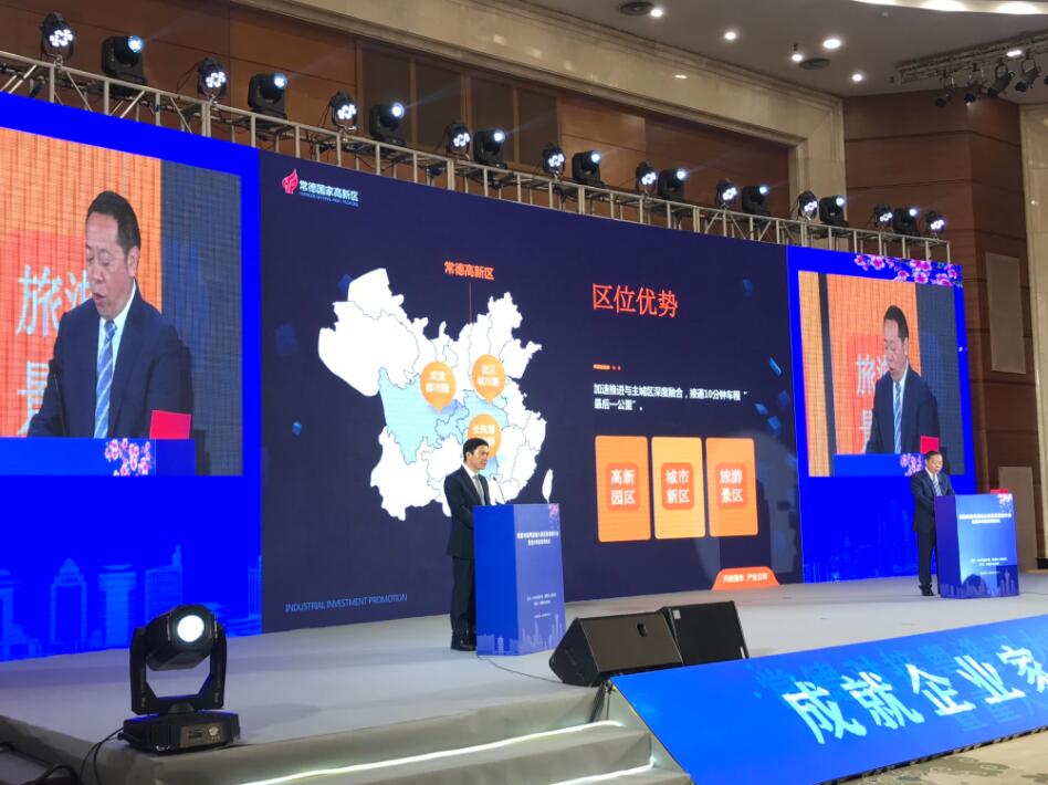 市委書記、市人大常委會主任周德睿發表講話。市委常委、市委秘書長羅先東主持會議並致辭。常德經濟技術開發區、常德高新技術產業開發區分別做了園區推介。