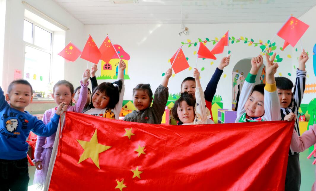 在新林區第一幼兒園,老師正在講解國旗知識,只為在孩子們心中種下一顆愛國種子。孩子們稚嫩的小手揮擺着國旗,露出一張張燦爛的笑臉,朝氣蓬勃的孩子們大聲的說,「祖國,祖國,我愛你!我們要好好學習,天天向上。」這是她們向祖國做出的最誠摯的承諾。