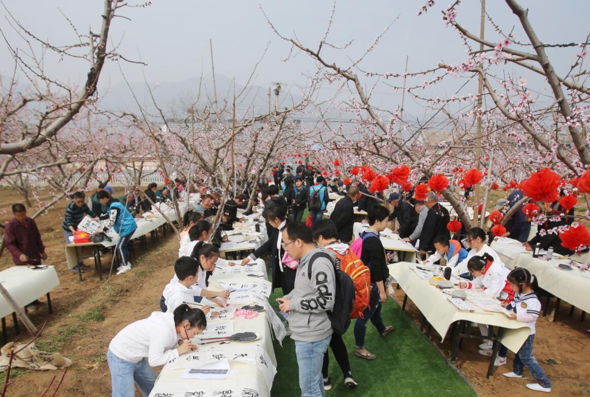 在盛開的桃樹下,來自劉家店地區的100餘位書法愛好者揮毫潑墨,即興創作。平谷區自2017年開始實施中國書法之鄉提升工程,全區形成了區、鎮、村三級書法培訓體系,數萬人參加書法培訓,活動中的參賽選手都是平谷區正在實施的書法之鄉提升工程的受益者。本次比賽既是檢驗劉家店鎮書法培訓的成果,也是給書法愛好者提供一個展示交流的平台。