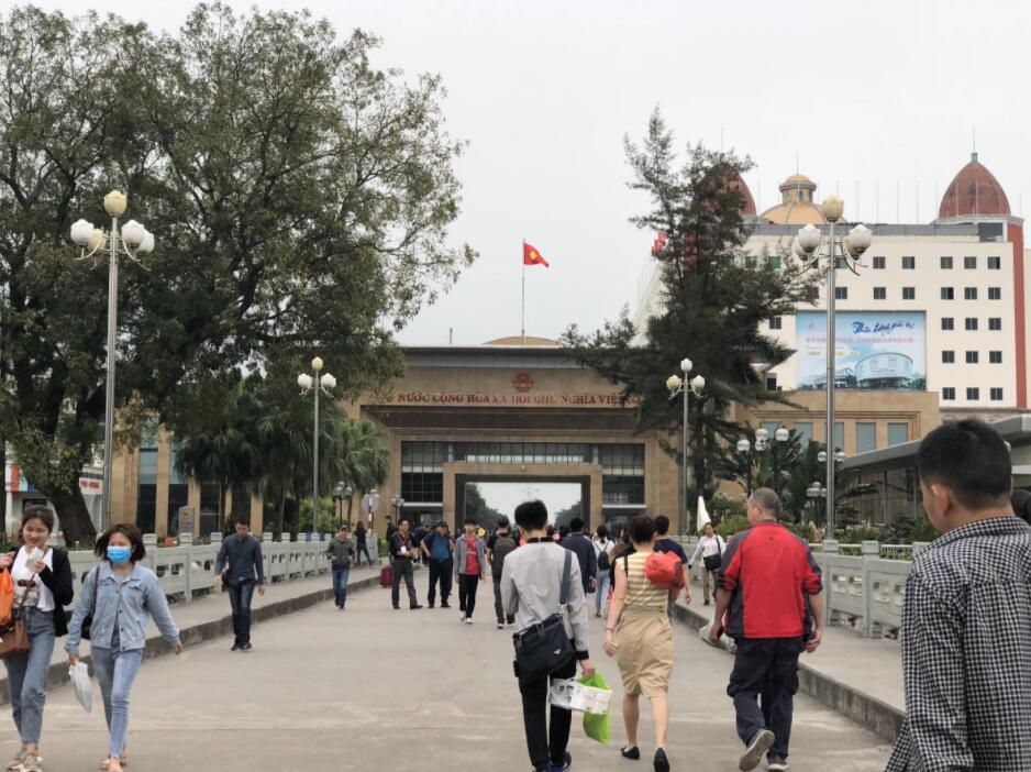 東興口岸北侖河大橋上人來人往