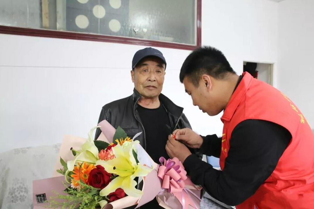 原40集團軍戰士的89歲曹慎賢老人,1951年參軍入伍,1952年參加抗美援朝,1957年複員,入伍期間立功7次。在他家中,退役軍人管理事務局的負責同志為他佩戴國旗徽章時,他提手敬了一個莊嚴的軍禮,過後與新林區委宣傳部、區退役軍人事務管理局相關人員以及志願者們講述抗美援朝期間發生的英雄事迹。