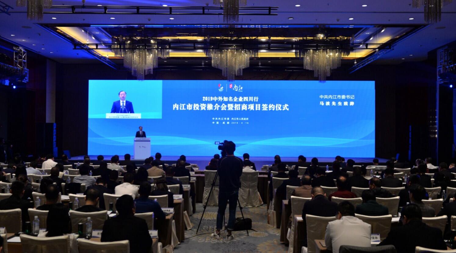 【香港商報網訊】2019中外知名企業四川行活動4月16日在成都啟幕。570家企業、363名董事長及總經理將參加這場年度盛會。當天下午,作為該系列活動的重要組成部分之一,在內江市投資推介會暨招商項目簽約儀式上,內江攜189個項目與150餘位中外知名企業家代表親密接觸。現場,內江還與各方簽約項目34個,投資總額332.2億元。