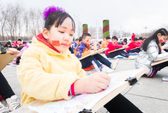 70名少年兒童共同繪製「我和我的祖國」(趙東來 攝)