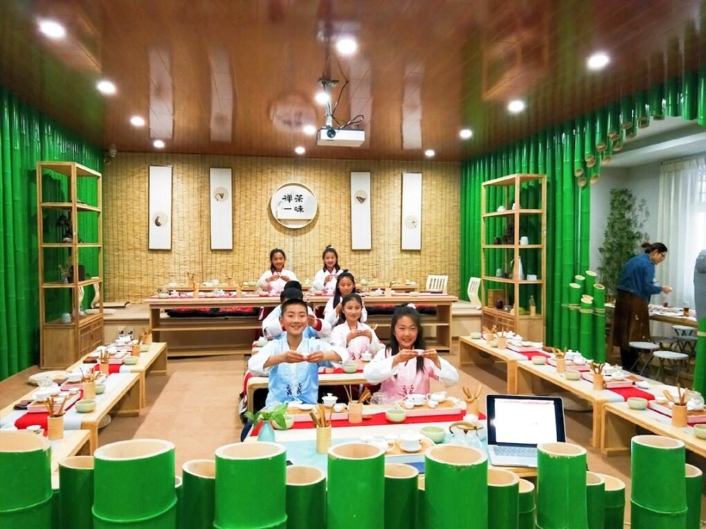 同樣是在王哥庄街道,老一輩的茶農們在採茶,而在露涎春茶廠,一名“90後”小茶農正在帶領孩子們進行茶藝學習,她就是露涎春茶業有限公司的總經理魯琦。“我們開設了茶藝課程、DIY花茶製作和果子課程等系列體驗項目,以用於推廣嶗山茶文化”。魯琦介紹說,為讓嶗山茶文化進校園,使孩子們了解本土特色產業,從學茶中傳承嶗山茶文化,她與嶗山區東泰小學共同開發少兒茶藝校外實踐課程,將茶禮融入到校園德育工作中,着力培養未成年人的文化素養。