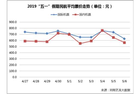 《報告》基於同程藝龍交通及機票大數據的分析顯示,“五一”假期期間民航和鐵路客流高峰主要集中在4月30日和5月4日,尤以5月4日的返程高峰客流量最為集中。4月29日開始,北京、上海、廣州、深圳、杭州、蘇州、西安、成都等城市鐵路、民航的出港客流將顯著上升,4月30日預計將形成節前出行客流高峰。返程客流高峰預計將出現在5月4日,這一天的機票票價水準也將是整個假期最高的。同程藝龍機票大數據顯示,“五一”假期期間的國內機票以5月4日的平均票價最高,達到了763元(不含稅費),甚至超過了同日國際機票的平均價格。4月30日的國內機票價格僅次於5月4日的返程客流高峰,平均票價為718元(不含稅費)。與國內航班相比,“五一”期間民航國際航班客流量波動相對較小,客流小高峰出現在4月30日和5月4日,平均票價最高為761元(不含稅費)。