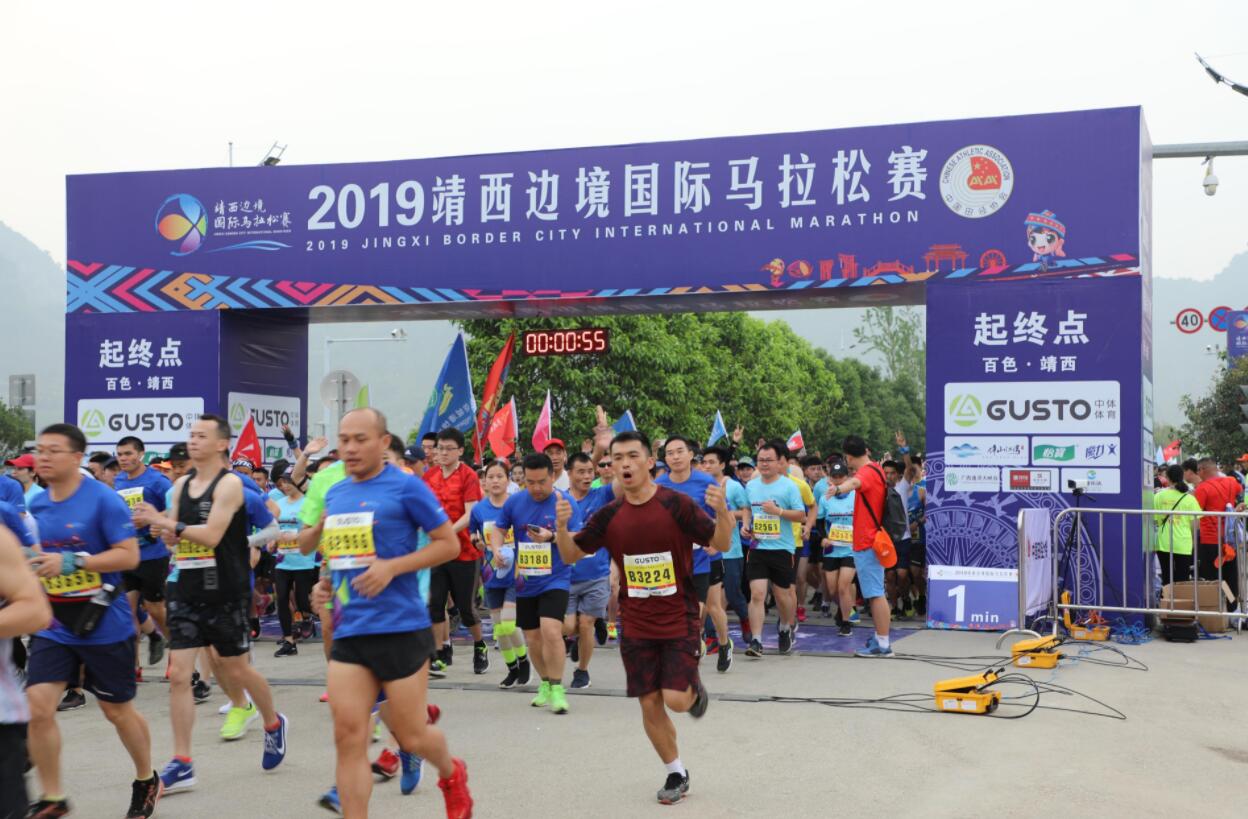 【香港商報網訊】記者 馨瑤 徐玉瑩 報導:4月21日,2019靖西邊境國際馬拉松賽在廣西百色靖西市鳴槍開跑。來自中國、法國、埃塞俄比亞、美國、越南等5個國家的6698名選手參賽。