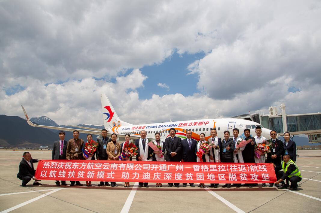 當日,迪慶州人民政府、東航雲南有限公司、雲南機場集團在迪慶香格里拉機場舉行了簡短的首航儀式。迪慶州政府副州長松濤表示,廣州-香格里拉航線的開通是東方航空雲南有限公司與迪慶州簽署對口幫扶航空產業發展戰略合作協議以來,開通的第一條扶貧航線。以發展航空產業促進地方經濟發展,是迪慶州創新扶貧模式的重要舉措,將助推迪慶打贏脫貧攻堅戰,與全省、全國同步實現小康。
