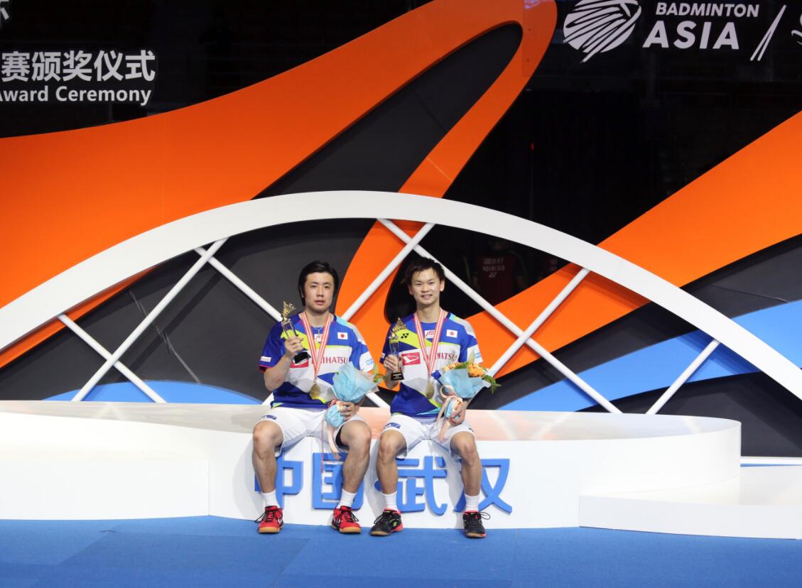 男雙決戰壓軸上演。來自印度尼西亞的頭號種子吉迪恩/蘇卡姆約對陣日本組合遠藤大由/渡邊勇大。此前的兩次交手印尼保持不敗。日本組合以紮實的防守和耐心著稱,今天的比賽中,這一點得以完全展現。首局比賽,日本組合取得領先,在印尼組合7-7追平後,雙方比分交替上升。隨後蘇卡姆約出現頻繁失誤,21-18,日本組合拿下首回合。第二局開始後,日本組合頂住對手連續下壓並形成反擊拿下一分。隨後,印尼選手一蹶不振,最終遠藤大由/渡邊勇大以21-3戰勝對手摘奪男雙金牌。