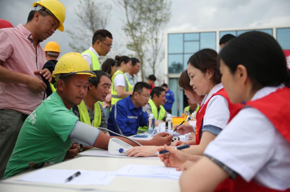 為了保障建設者們的身體健康,五冶醫院的專家們給農民工兄弟帶來了糖尿病和高血壓的防治知識,並教他們如何在遭遇外傷、食物中毒、中暑、觸電等情況時進行自救和急救。此外,五冶醫院的白衣天使們還通過開展現場測血糖、血壓、肺功能檢測、健康諮詢等,為農民工篩查疾病,根據每個人的不同情況,個性化地指導他們預防及治療相關疾病,得到了參加活動的各級領導及農民工兄弟的高度評價和熱烈歡迎。當天,中國五冶集團工會還對項目職工和農民工兄弟進行了慰問,發放了香皂、毛巾、藿香正氣水等慰問品。