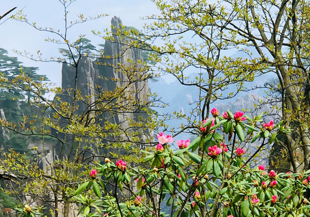 黃山杜鵑又名安徽杜鵑,是安徽省省花,為我國特有的珍貴稀有樹種之一。 黃山杜鵑素有高山玫瑰之稱,多生長在黃山風景區海拔1500米以上的岩坡灌叢之中,在玉屏樓、北海、西海、散花塢、始信峰等地均有較大面積分布,是黃山松的主要伴生樹種,也是四、五月份黃山的最大看點之一。