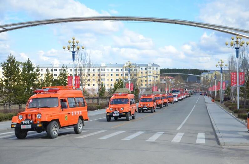上午9時整,新林區址新林鎮警報陣陣,警笛長鳴,30餘台由指揮車、警車、消防車、運兵客車、宣傳車、通訊車組成的遊行車輛安插彩旗、懸掛防火內容橫幅,沿着指定路線開始車輛遊行宣傳。