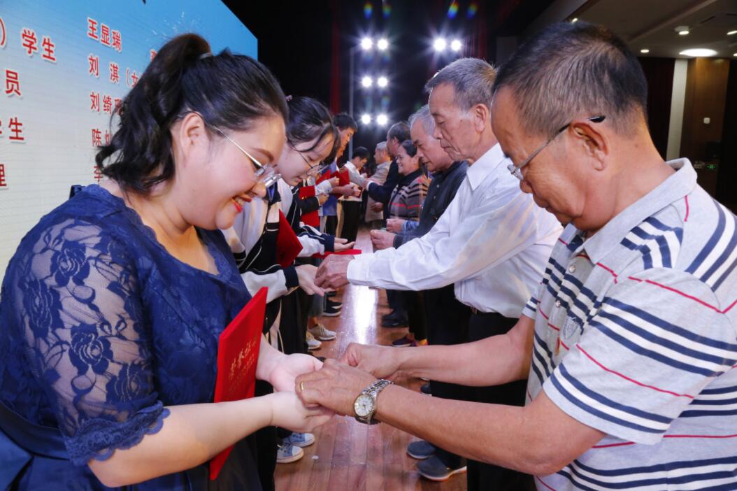 大會上,朱銳、高峻等先後為燕羅街道燕川社區團委、燕羅街道塘下湧社區團委、燕羅街道洪橋頭社區團委、深圳市三諾數字科技有限公司團支部、燕羅街道燕羅塘醫院團支部等5個「五四紅旗團組織」獲獎集體和文美玲 李韋坤 李兵兵 謝小挺 彭利娟 曾志雄 曾建美 賴志鵬 潘二妹 魏立強10名「燕羅青年五四獎章」、文健彪 王璀峰 陳秋明 李曉紅 曹揚斌5名「優秀共青團幹」、王顯瑞 劉 淇 劉綺珊 陳燦豪 李曼玲 肖遙翎 塗華隆 曾坤敏 彭琳茜 賴明輝10名「優秀共青團員」獲獎個人頒獎,並與大家合影留念。在「優秀共青團員」頒獎環節,活動還特別邀請了街道十位優秀老黨員為團員佩戴團徽。革命傳統代代傳,初心信仰不曾變,通過老黨員的傳幫帶,為青年一代指明正確的前進方向,激發燕羅青年一代的幹事創業激情。