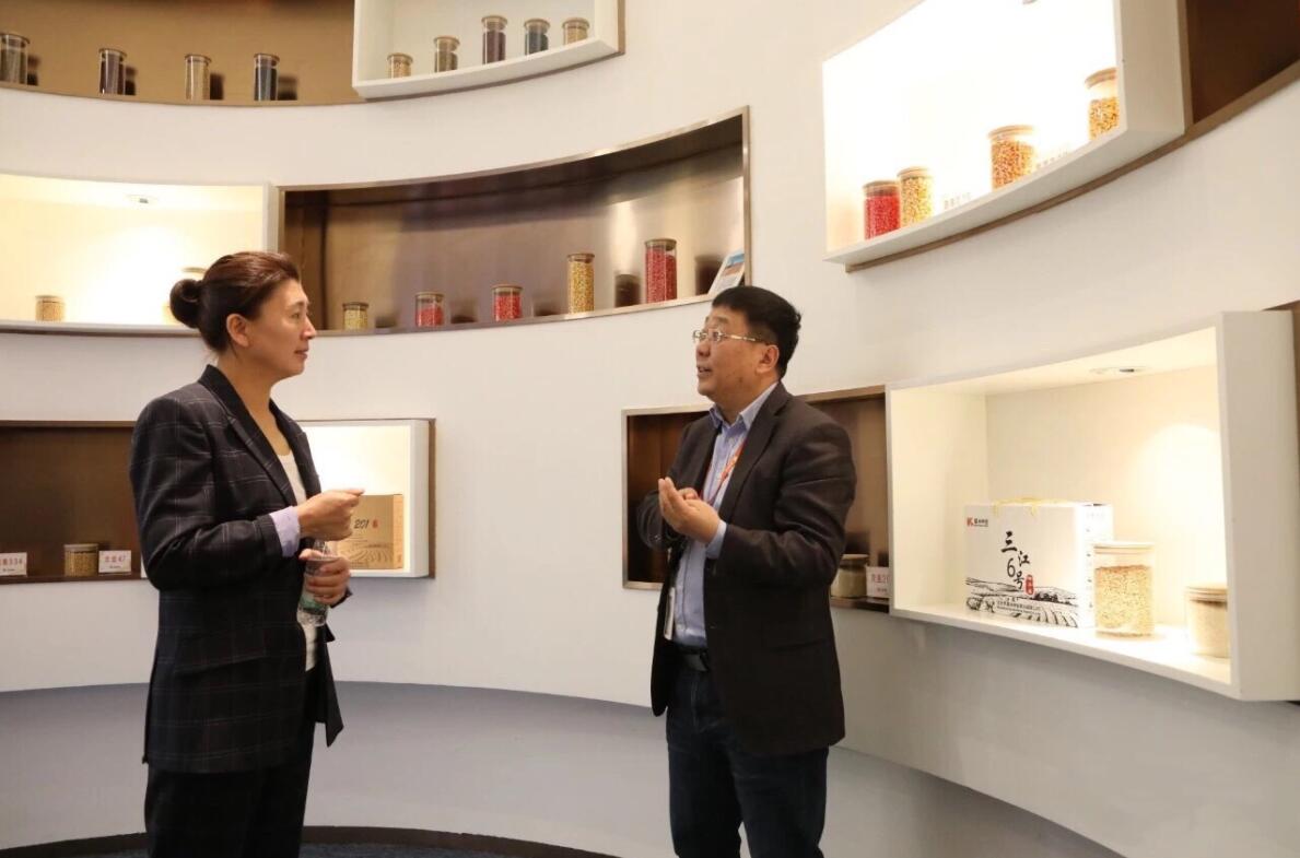 在信息中心,閆學晶聽取了公司信息化建設的情況及未來發展規劃情況的介紹,體驗了墾豐種業現代化雲辦公系統,對墾豐種業「互聯、精細、共享、智能」的信息化理念和先進高效的智能化辦公環境、線上線下一體化的模式給予了高度的讚賞。在研發中心,劉輝副總向閆學晶介紹了研發中心的規模、作用以及重點實驗室的功能,她對墾豐科研創新能力、走在前沿的科研技術表示高度讚歎,認為墾豐種業實驗室的硬件軟件均已到達國際先進水平。在加工中心,閆學晶詳細了解了從果穗烘乾、脫粒、籽粒烘乾、精選加工、種子包衣等種子加工流程,對墾豐種業國際化先進成熟的生產技術給予高度認可。
