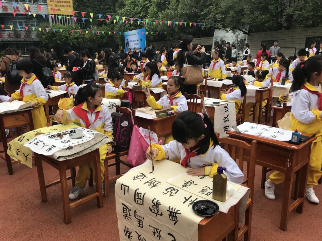 目前,學校書法特色教育由單純的「習字長技」,轉為書法特色教育文化體系的構建,從培養學生正確的書寫姿勢開始,再引導他們揣摩字形變化規律,最後再讓同學們學習漢字字體的演變和中國書法的歷史。