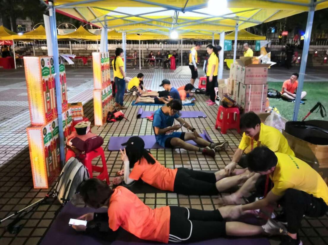連續三屆為活動提供肌肉恢復服務的金活派出了近百名志願者為驢友們進行藥油拭搽按摩服務,更提供近兩萬瓶金活依馬打正紅花油給驢友們。