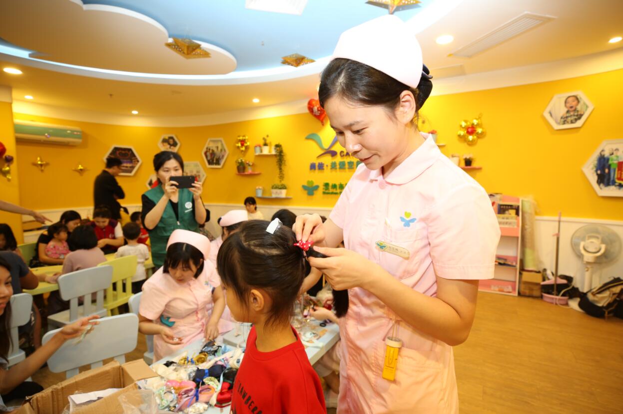 活動現場,孩子在社工及企業義工的帶領下,通過多樣方式傳遞對護士的最溫情的告白:“愛的裝扮”暖心祝福照片牆裝飾、小小手工等形式為護士站換新裝,增添節日氣氛。“愛要大聲說出來”或是組織住院、出院的小朋友家長一起錄製向護士姐姐“愛的告白”視頻;或是說出你眼中的護士,發現護士的另一面。“護士姐姐的一天”患兒打扮成護士姐姐的模樣,體驗護士姐姐的工作。“愛的聯歡”邀請護士姐姐一起在空間聯歡。“愛的禮物”一起與護士姐姐合作愛心禮品或與爸爸媽媽一起遊戲闖關獲取愛心禮品,傳達感恩之心。“感恩的心”或是患兒們一起用行動才藝來表達對護士姐姐的感謝。“愛的延續”活動最後50名企業義工及35名小小義工組成8隊小分隊,前往各科室護士站,為奮戰在一線的白衣天使送上節日的問候。如此種種,各樓層患兒及家庭都是用心的參與其中,用滿滿的愛來表達自己的感謝。