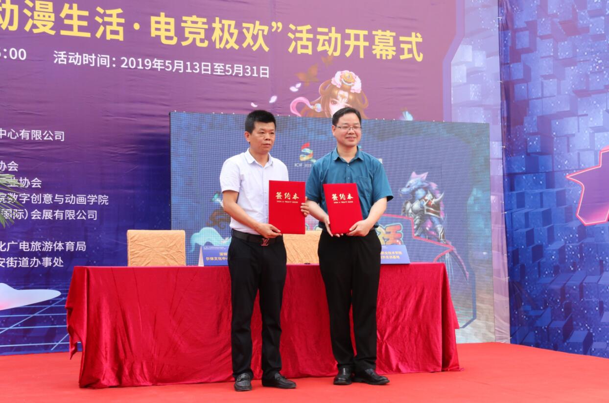 開幕儀式上,爾體AE小鎮與深圳職業技術學院校外實訓基地舉行了簽約儀式,雙方通過戰略合作,以動漫、漫畫、遊戲、項目代理、動漫展會、展覽策劃、動漫創意平台、動漫遊戲版權保護交易平台為基礎,力將爾體AE小鎮打造成為深圳寶安一流的動漫畫產業基地。