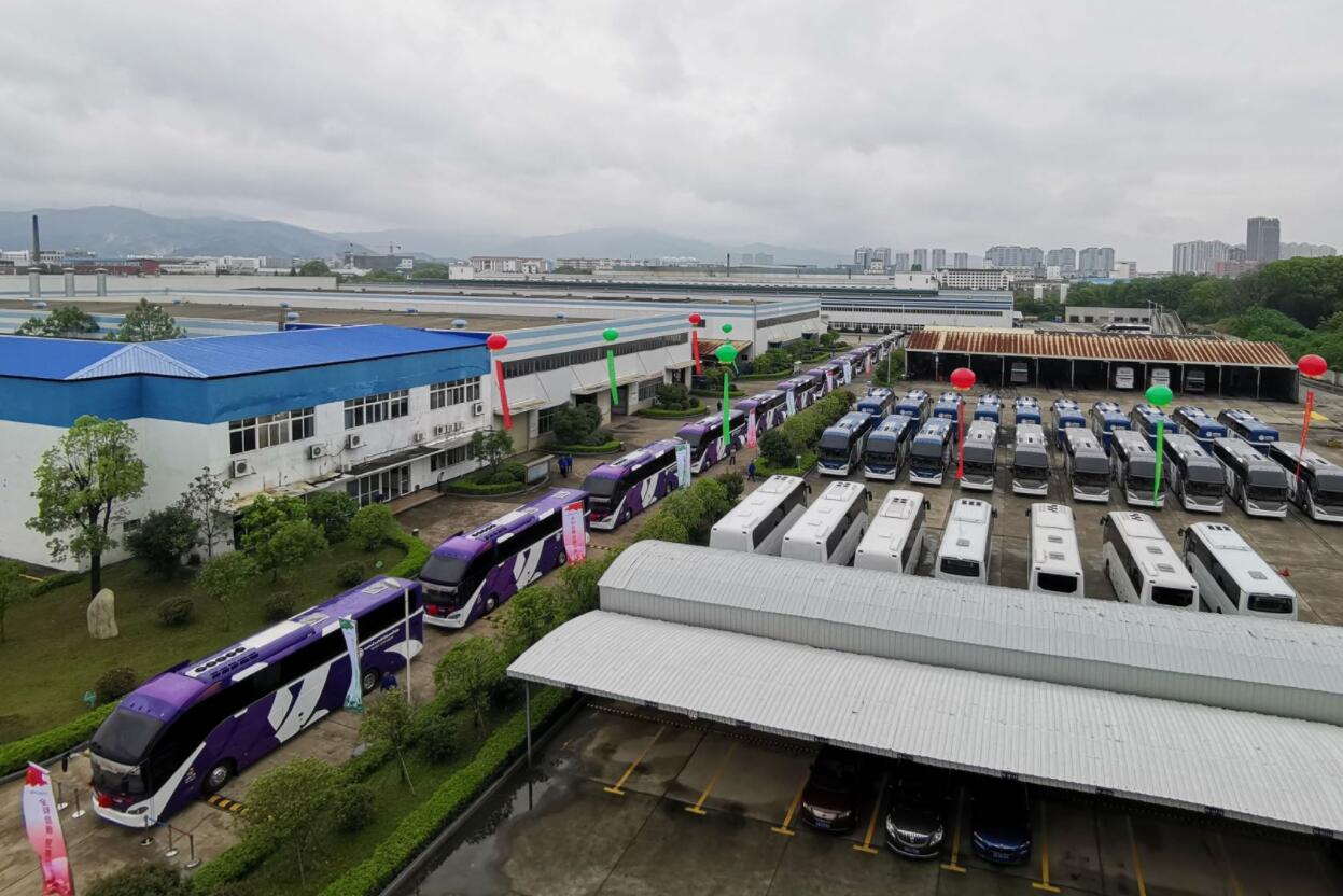 江西凱馬百路佳客車身披紅綬帶,即將駛向沙烏地阿拉伯