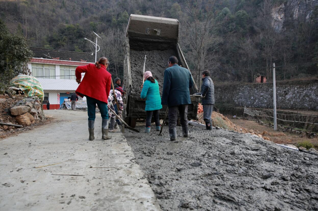郭峪村村民擴寬通村公路