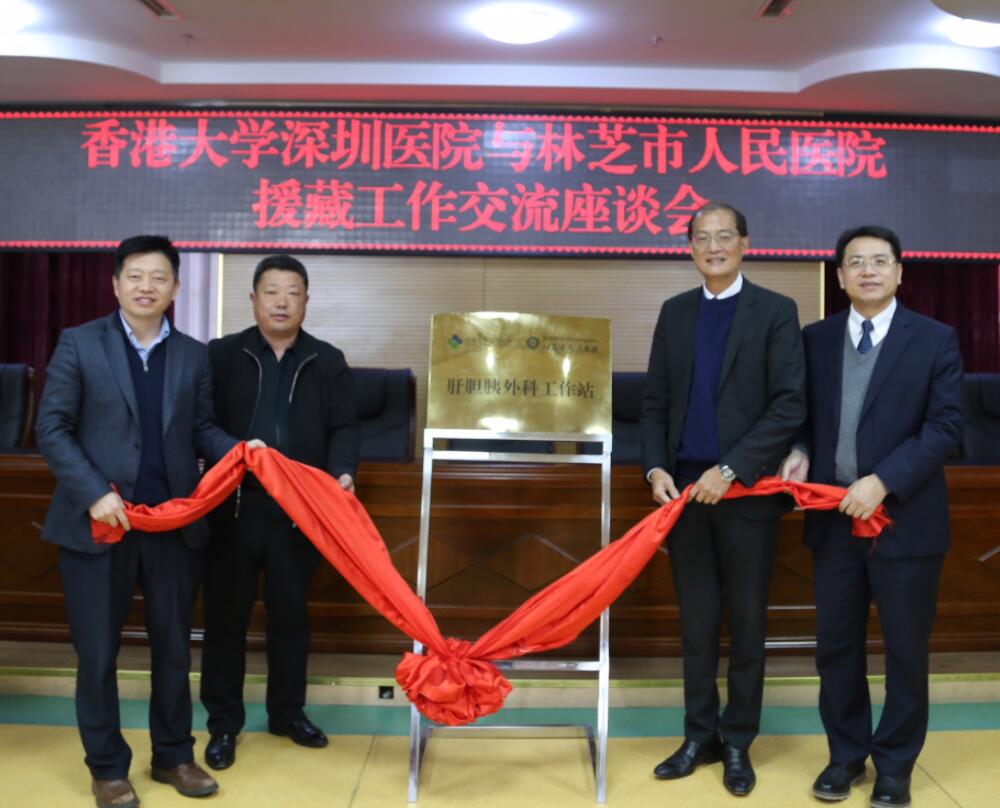 當天,林芝市人民醫院還舉行了「香港大學深圳醫院、林芝市人民醫院肝膽胰外科工作站揭牌儀式」,今後雙方將在肝膽胰外科學科建設及疑難危重病例上開展合作探索。林芝市人民醫院李欣院長為盧寵茂教授頒發特聘教授聘書。