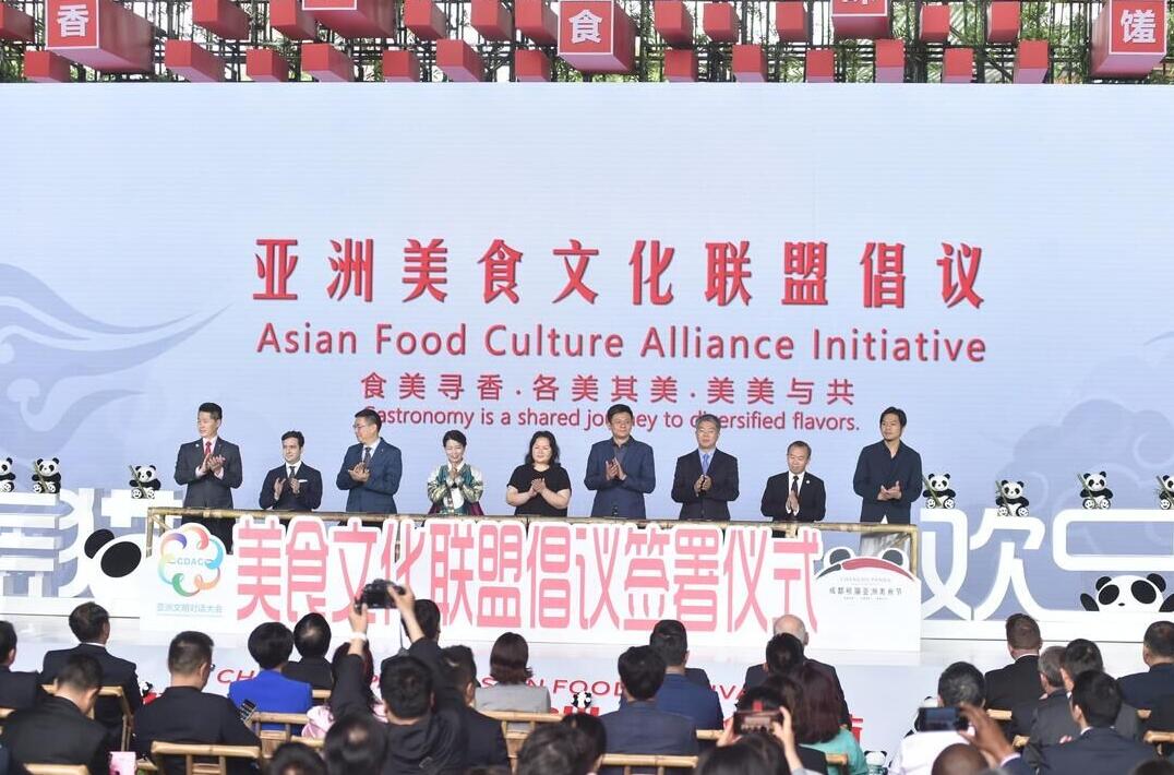 值得一提的是,由成都餐飲同業公會倡議發起的「亞洲美食文化聯盟」在開幕式上結出成果:一帶一路東南亞非政府組織聯盟、世界辣椒聯盟、四川旅遊學院、北京大學文化產業研究院、韓國食文化國際交流協會、阿里巴巴本地生活、國際慢食協會大中華區分會、日本麻辣聯盟等機構首批加入。相關代表上台簽約,將加強常態化的平等交流與合作,共同保護和傳承美食技藝,培育美食文化傳播人才,推廣亞洲美食文化,促進亞洲跨地區文明的共鑒共賞。