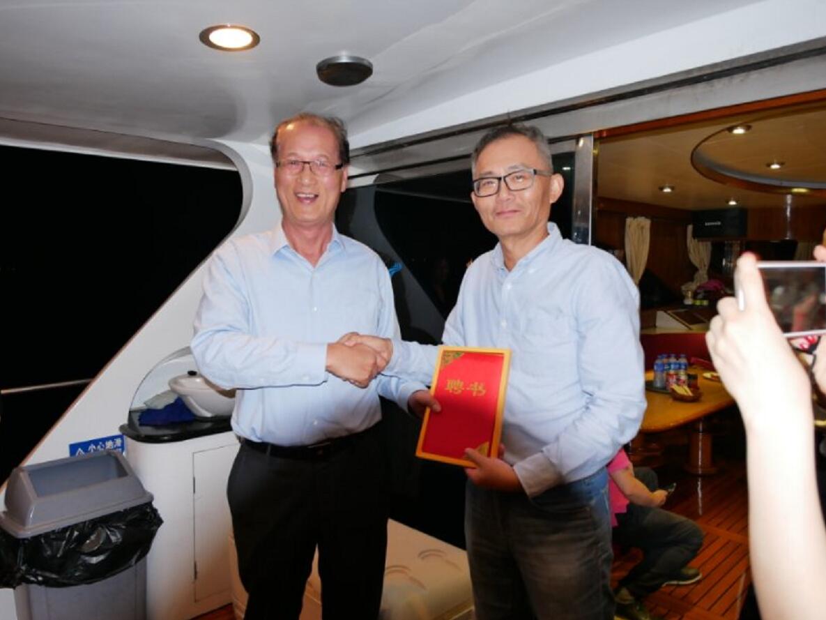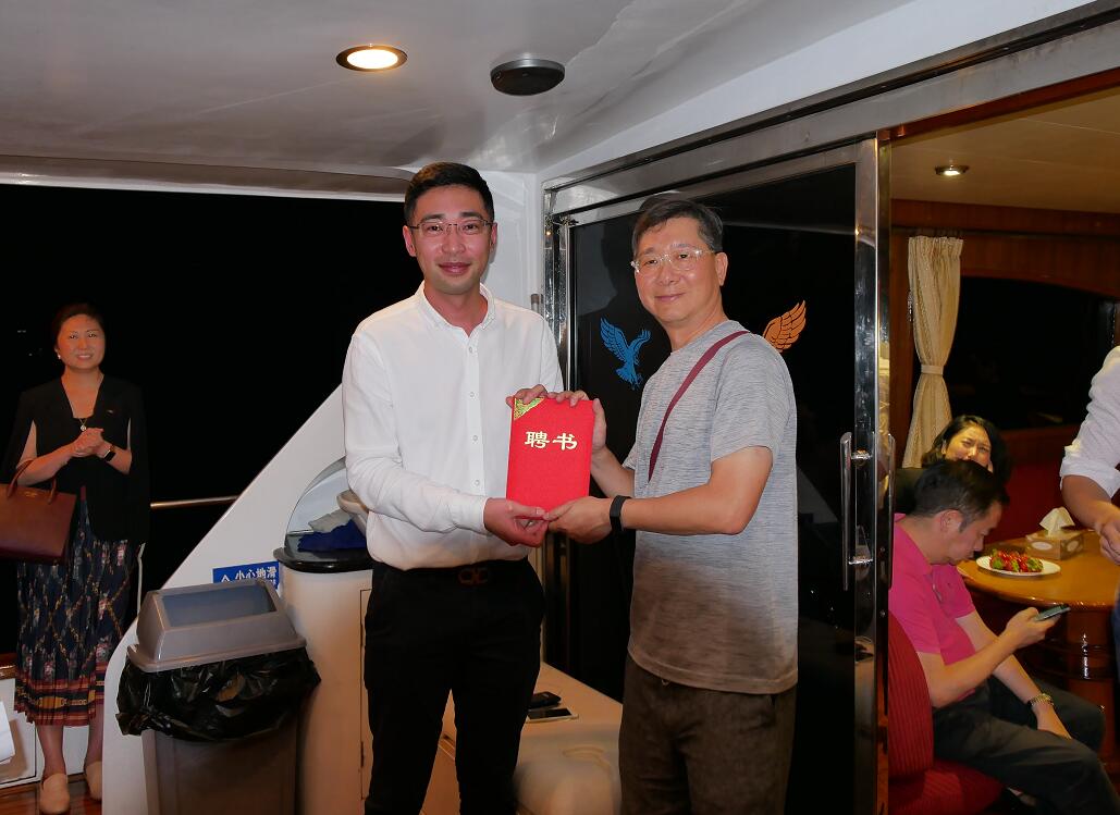 【香港商報網訊】記者 蘇偉 報導:5月14日晚上,迎新活動在香港以遊艇觀光形式成功舉行。中聯辦、廣東省政府港澳辦、粵港澳合作促進會的領導為聯合會聘請的港區顧問、委員頒發了證書。聯合會文煥主席主持頒證儀式,並與港區顧問、委員合影留念。
