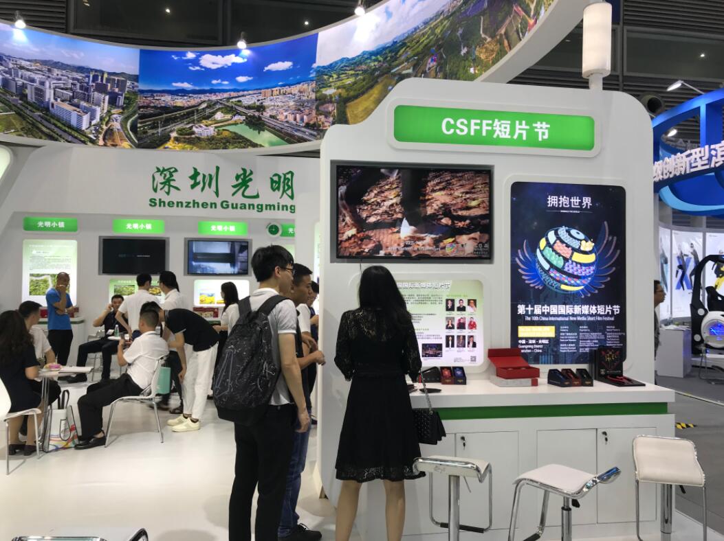 光明本次參展主要以展示光明區形象為主,推介區內文化創意企業和產品為輔。玉嘉華實業的「功夫小熊」曲奇、小熊動漫等文化產品;精美的格雅真鑽表;可怡口紅款tws藍牙耳機;實景入畫的喜德盛VR單車等「黑科技」,引來不少觀眾駐足觀賞。