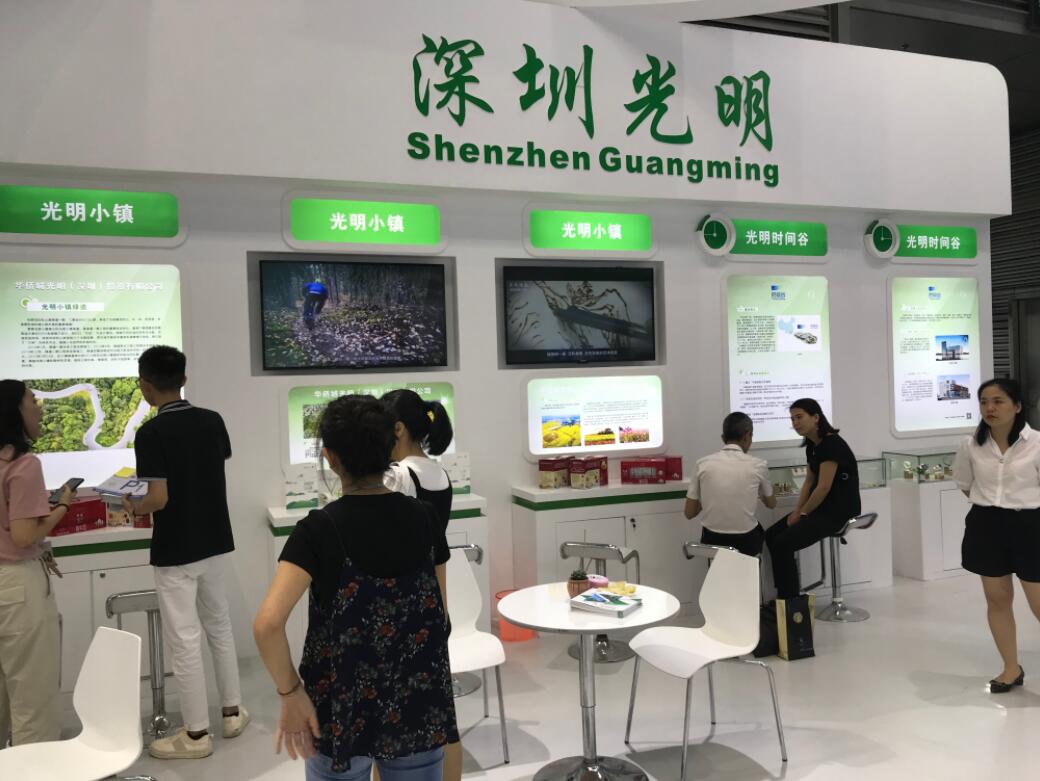 【香港商報網訊】記者 黃鳳鳴 報導:今年文博會,深圳光明區首次在深圳會展中心主展館設立展區,位於1號館1D12展位,以簡潔明快為設計風格,色調以白綠搭配,空間結構呈上升之勢。