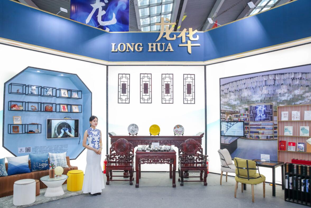 此次,龍華區展館面積525平方米,以蝶變為靈感來源和設計原型,大氣、優雅、簡潔、時尚,文化底蘊與現代科技相交融,文化氣息濃郁。展館圍繞「文心龍韻·博薈華章」的主題,主要分「文產品牌」「時尚大浪」「科技之光」「智慧中軸」四個區域,龍華區45家重點企業、園區參展,共展出223件文創精品。展館從高空俯瞰是一支優雅的蝴蝶造型,外圍集中展示了觀瀾版畫、大浪時裝、觀瀾紅木、國瓷永豐源、觀瀾湖手工藝等核心文創品牌。亮相廈門金磚國家峰會的國瓷永豐源「夫人瓷·石榴家園」瓷器、展現獨特設計及工藝的大浪時裝、不同繪畫風格品位高雅的版畫、分別代表傳統與創新的觀瀾紅木品牌、充滿生活氣息的觀瀾湖手工藝作品、品味讀書樂趣享受生活的覔書店……龍華文創傳統品牌底蘊深厚,展現出龍華文創的特色和亮點。