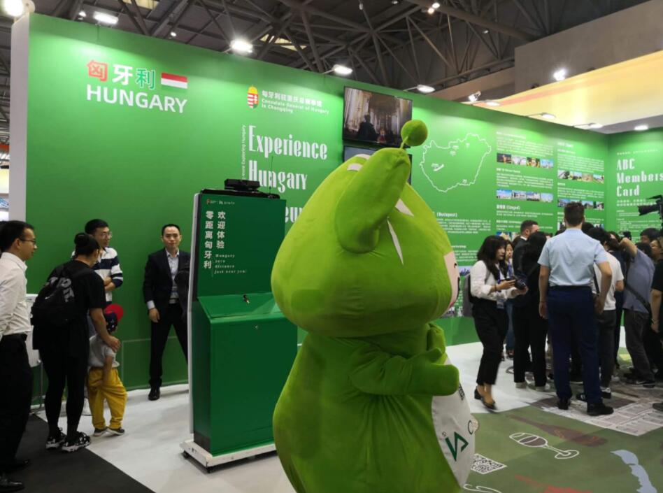在匈牙利國家館,不僅展示了近年來中匈兩國的交流合作,還展出了葡萄酒等特色商品及旅遊業等優勢產業。據匈牙利駐重慶總領事羅瀾介紹,匈牙利國家館展覽面積達500平米,是本次西洽會上最大的國家館。此次匈牙利代表團共有50餘家匈牙利企業來渝參展,將以西洽會為契機,推動匈牙利與重慶在創新、文化、旅遊、溫泉醫療等方面的合作。