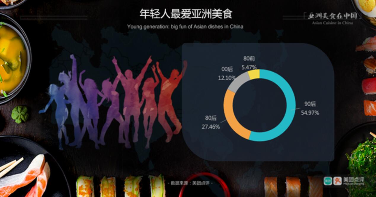 在消費群體方面,90後、80後亞洲美食消費佔比最大,分佔55%、27%,說明40歲以下的年輕人更渴求多元化美食探索,喜歡亞洲餐廳各種新鮮口味。