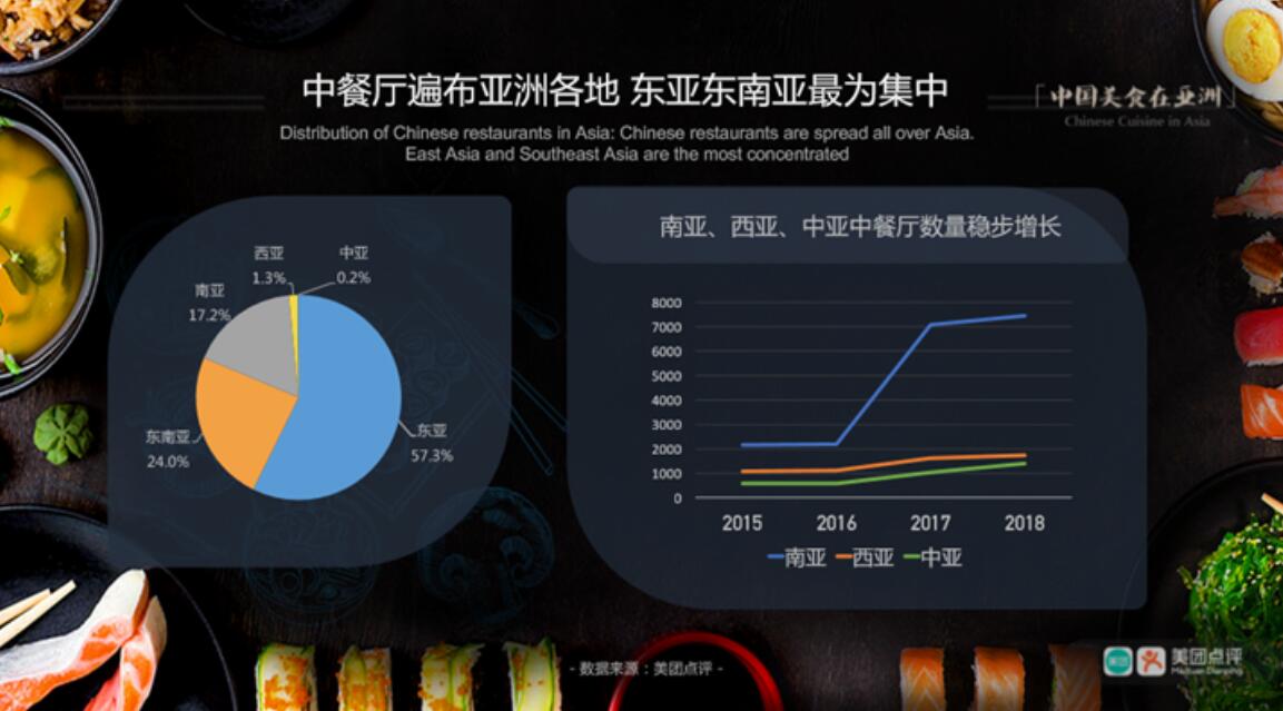 近年來,中華美食越來越受到亞洲各國人民的喜愛。美團點評數據顯示,2018年亞洲各國中餐廳在線數量達到4.4萬多家,這一數量與2015年相比增長約120%。