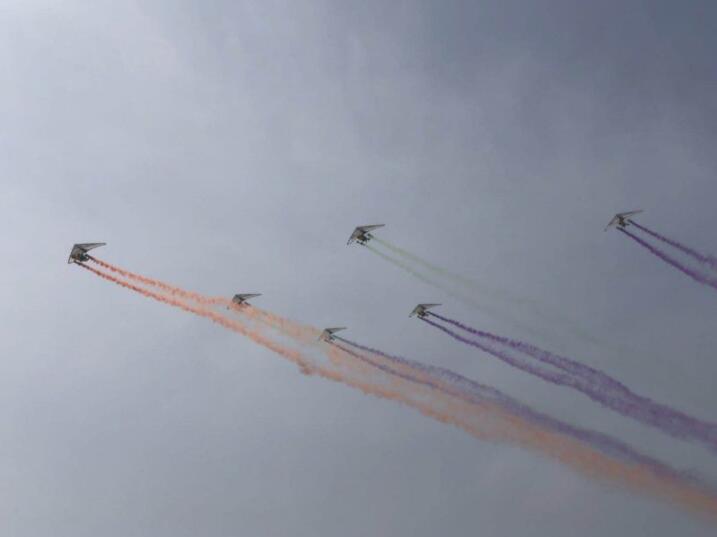 開幕式上,包括空中海報表演隊、極限表演隊、天空藝術表演隊等在內的世界一流特技飛行表演隊登場獻技。本次大會還首次引入“大雁伴飛”表演項目、模擬空戰、飛機在皮卡上懸停等精彩表演項目。特別是“大雁伴飛”表演,9只灰雁、8只蓑羽鶴與動力懸掛滑翔機一起禦風飛翔,讓現場觀眾大飽眼福。15架自轉旋翼機編隊表演也是在國內首次亮相。