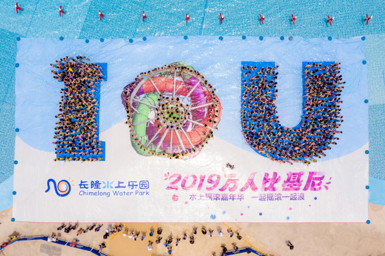今年長隆水上樂園「萬人比基尼」活動再次玩出新創意,在「520」表白日即將到來之際,一台由數千名比基尼美女組成的「搖滾巨輪」驚現長隆水上樂園造浪池,比基尼美女們合力挑戰把「搖滾巨輪」和「I LOVE U」元素融合,從高空俯瞰,這個全球第一台自帶動力系統並能夠自主旋轉的超大型玩水設備被完美復刻,青春靚麗的比基尼儼然就是「搖滾巨輪」利用三條特殊透光材料做成的水上滑道,耀眼動感程度足以媲美其超過700個LED燈打造的玩水燈光秀!
