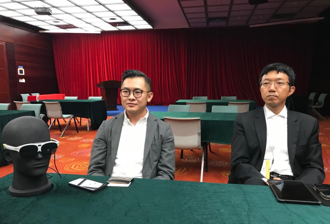 太平洋未來科技自主研發的新品am glass,(左爲李建億,右爲昌盛)