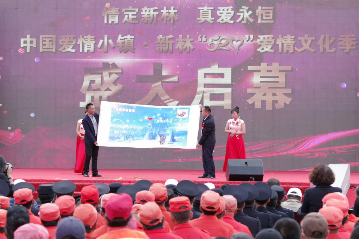 開幕式上,歌伴舞《狂浪》拉開了「520」愛情文化季主題文藝演出的帷幕。愛情小鎮的「小天使們」為各位領導和嘉賓送上了中國愛情小鎮新林的吉祥物「愛情鳥」。主題文藝演出期間,穿插了許下真愛誓言活動,愛情小鎮新林第一對幸運情侶走上真愛見證台,將手放到真愛永恆見證書上,許下真愛誓言「我愛你一生一世,一生一世只愛你」。
