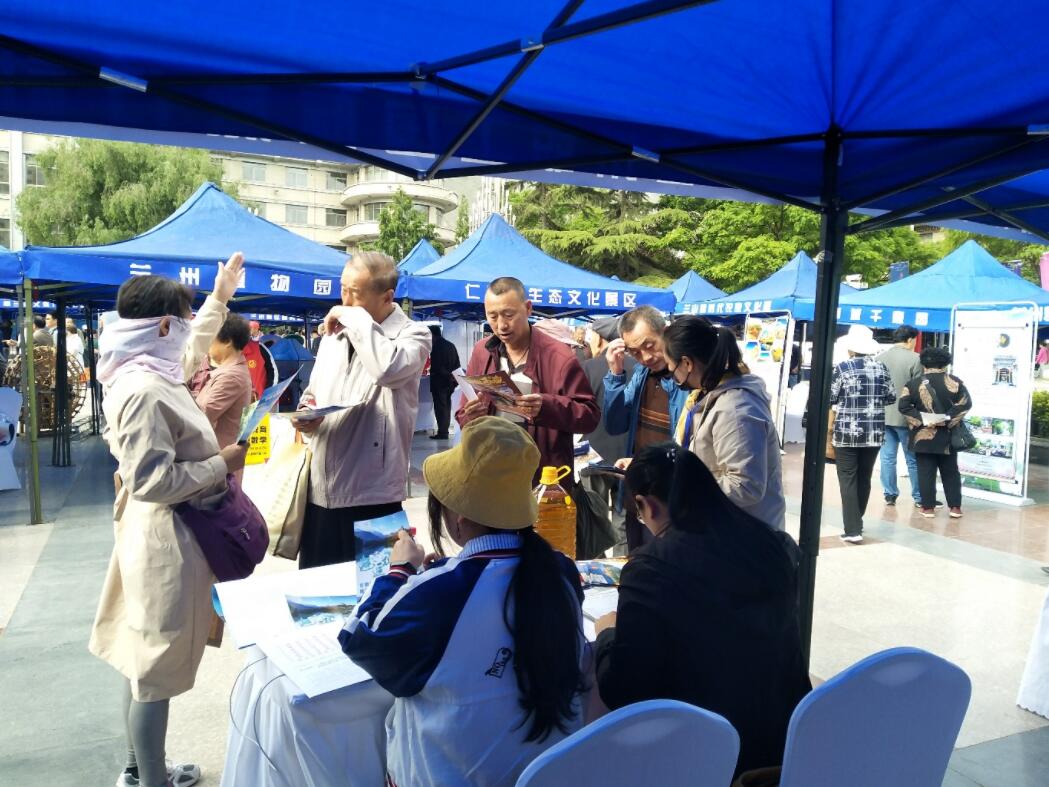 【香港商報網訊】5月19日,2019年中國旅遊日甘肅省分會場在蘭舉辦,現場由旅遊志願者、 旅遊經營單位、文化單位,旅遊從業人員組成的宣傳隊伍開展豐富多彩的文明旅遊、安全旅遊、品質旅遊、誠信旅遊、智慧旅遊公益宣傳活動,推出門票優惠、項目優惠、住宿優惠、餐飲優惠、團隊旅遊優惠等惠民措施。