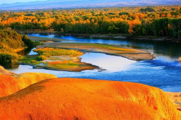 五彩灘景區是前往喀納斯的必經之路。這裡有着「一河隔兩岸,兩岸兩重天」的奇幻之景:一邊是鬱鬱蔥蔥的河谷風光,一邊是河水侵蝕後的斑斕美景。「一河隔兩岸,兩岸兩重天」,五彩灘自然天作的美景,讓五彩灘景區於去年已入圍「神奇西北100景」。