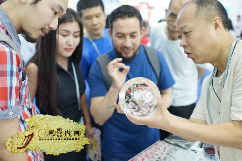 【香港商報網訊】記者 蘇偉 報導:在深圳「文博會」上,記者與老朋友深圳著名內畫大師非遺繼承人王一帆老師不期而遇,他說,這次參展代表深圳市羅湖區及文化館非遺保護中心參加的,他還把非遺進校園他教的學生深圳市羅湖區螺嶺外國語實驗學校的「內畫社團」的孩子們也帶到了文博會現場,目的是讓更多的小朋友們親身感受到內畫之美和讓非遺產品「活化」起來。讓非遺從生活開始從每個人認識瞭解開始從而得到傳承,記者在現場看到,每天他們的展位前都是人山人海,有家長帶孩子來的,也有學校組織同學們來參觀學習的,更有一些外國友人對內畫的神奇,驚歎不已,紛紛拿出手機拍照並購買。