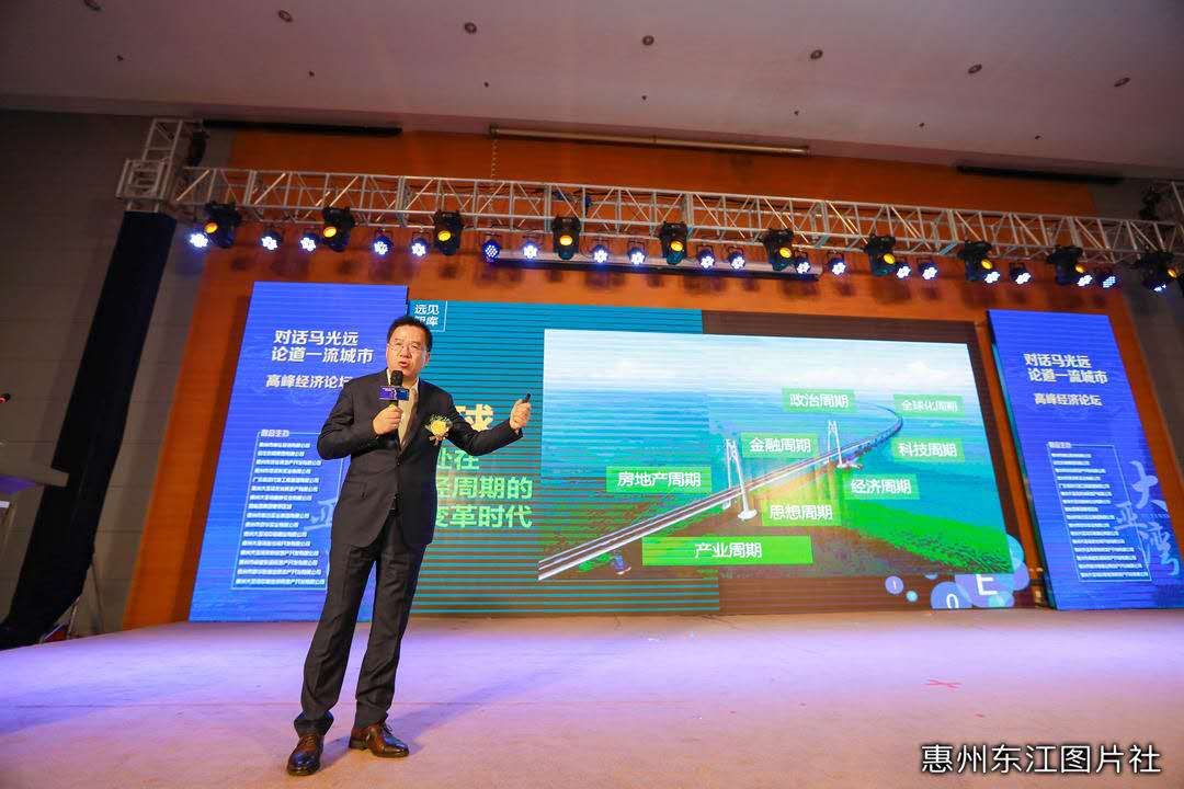 在新一輪改革開放過程中,惠州如何爭創國內一流城市?惠州未來發展蘊藏哪些新機遇?經濟新週期下,房地產業走勢如何?在論壇上,馬光遠作了題為「中國經濟新週期下的城市化戰略」的主題演講,對惠州如何搶抓新時代紅利來建設國內一流城市進行深入解讀。