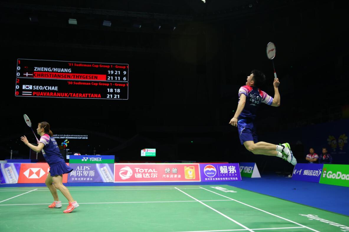 首場混雙賽中,由世界排名第一的中國組合鄭思維/黃雅瓊對陣丹麥克里斯蒂安森/蒂格森。丹麥隊發揮出色,以21:19贏得首局。中國組合迅速調整戰術,以21:11和21:13連贏兩局逆轉取勝。