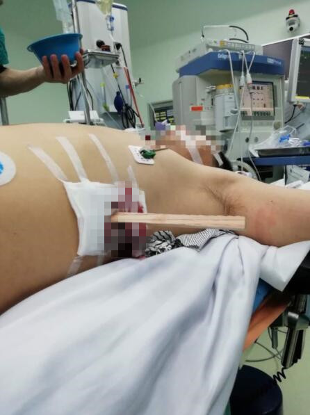 「木棍穿入患者腹部極深,完全貫穿左腎,刺入右腎。這還沒完,不僅僅是木棍穿腰這麼簡單。手術中的不確定性大,木棍緊鄰腹主動脈、下腔靜脈、雙腎等重要血管、臟器,一些大的血管可能一時被木棍壓迫止血,開腹後可能出現大出血導致患者死亡。」參與手術的醫生介紹,木棍的頭端呈扁平狀,在取出過程中易發生切割作用,如果略有移位,可能發生致命性的大出血、截癱等,所以手術風險高,難度巨大。如果兩邊腎臟都不能保住,那麼患者面臨的,將是下半生的長期透析。